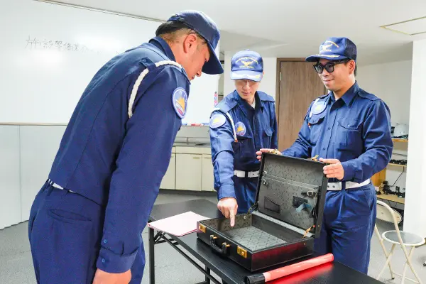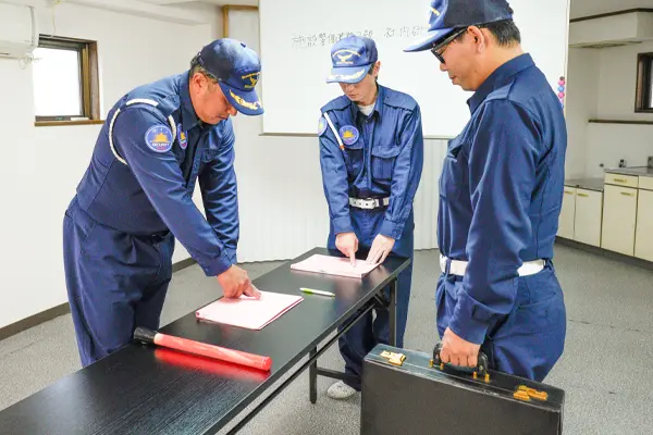 現在、警備員として業務を行っている者に対する教育です。年度ごとに10時間以上の現任教育を受けます。新しい法律についてや基本動作の確認など、各業務や現場の実態に即した教育を実施し、警備員の知識及び能力の維持向上を図っています。